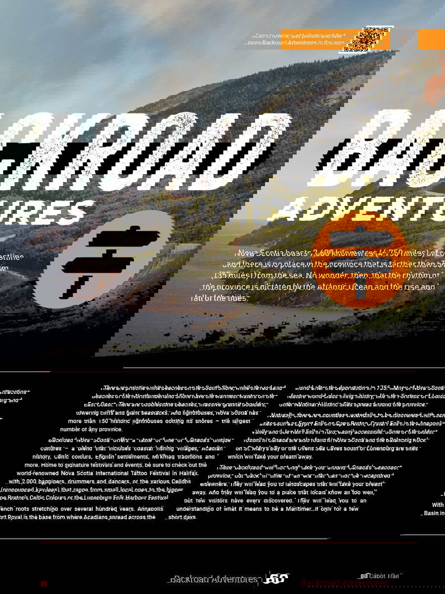 The province of Nova Scotia boasts a rugged and beautiful maritime landscape, as well as a unique culture steeped in Acadian, Celtic, Mi'kmaq and African tradition. Best known for the cultural hub of Halifax, the wildlands of Cape Breton and the countless coastal fishing villages that seem untouched by time, Nova Scotia is an explorer's paradise. With no portion of the province further than 56 km (35 mi) from the ocean, Nova Scotia is a land ruled by water. Bask in the salty air of the Atlantic as you watch puffins, dolphins and whales from the shore, explore remote backroads on your way to a picturesque lighthouse, hike the fabled trails of Cape Breton Highlands National Park or take a trip across the Northumberland Strait to relax on PEI's perfect beaches – with the newest edition of our Nova Scotia/Prince Edward Island Mapbook in hand, there is no limit to what you can discover in this maritime wonderland.